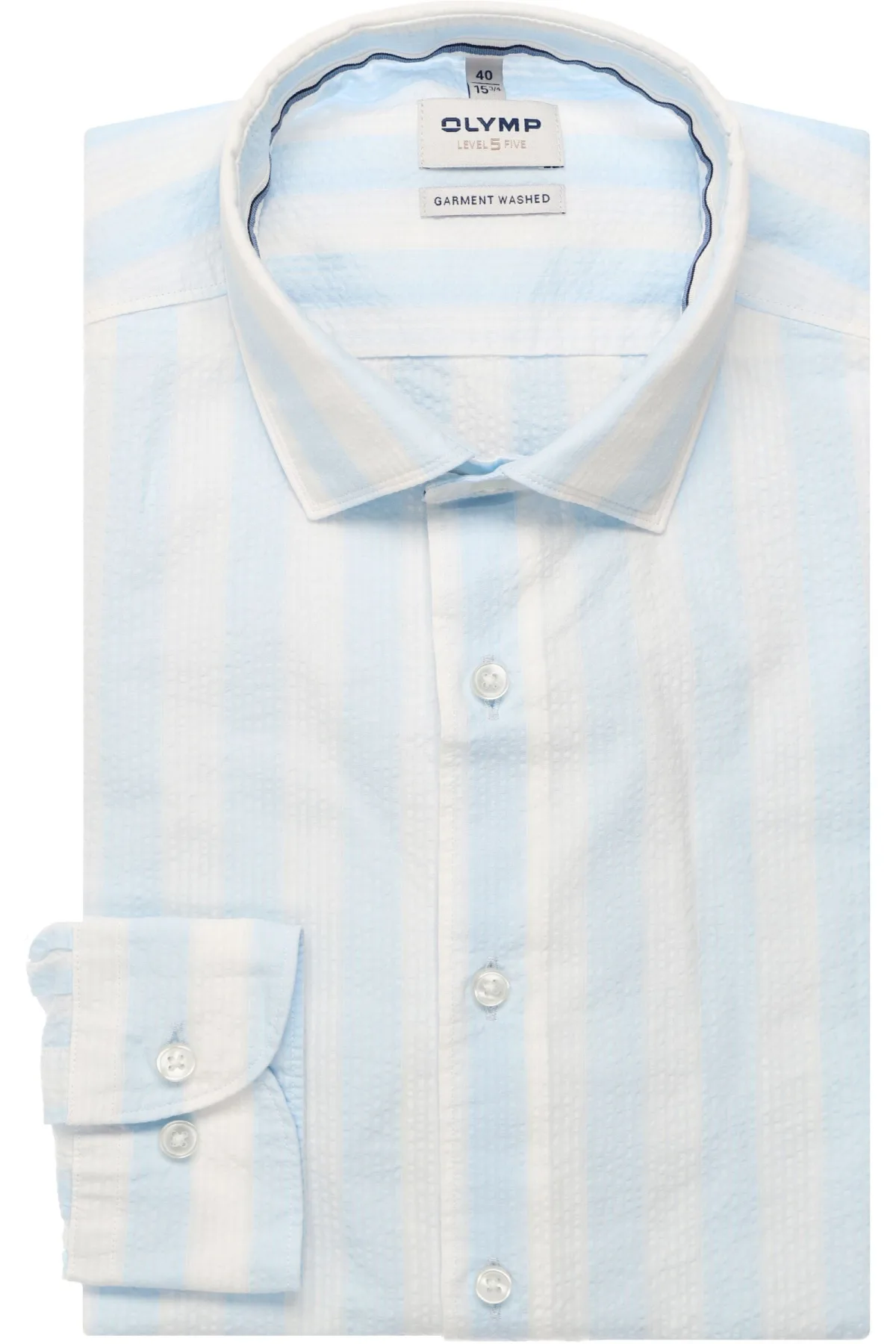 - Bij Overhemden.com kun je OLYMP Level Five Garment Washed Overhemd lichtblauw, Gestreept kopen voor slechts €84,95