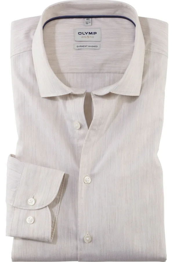 OLYMP Level Five Garment Washed Overhemd natuurlijk, Melange