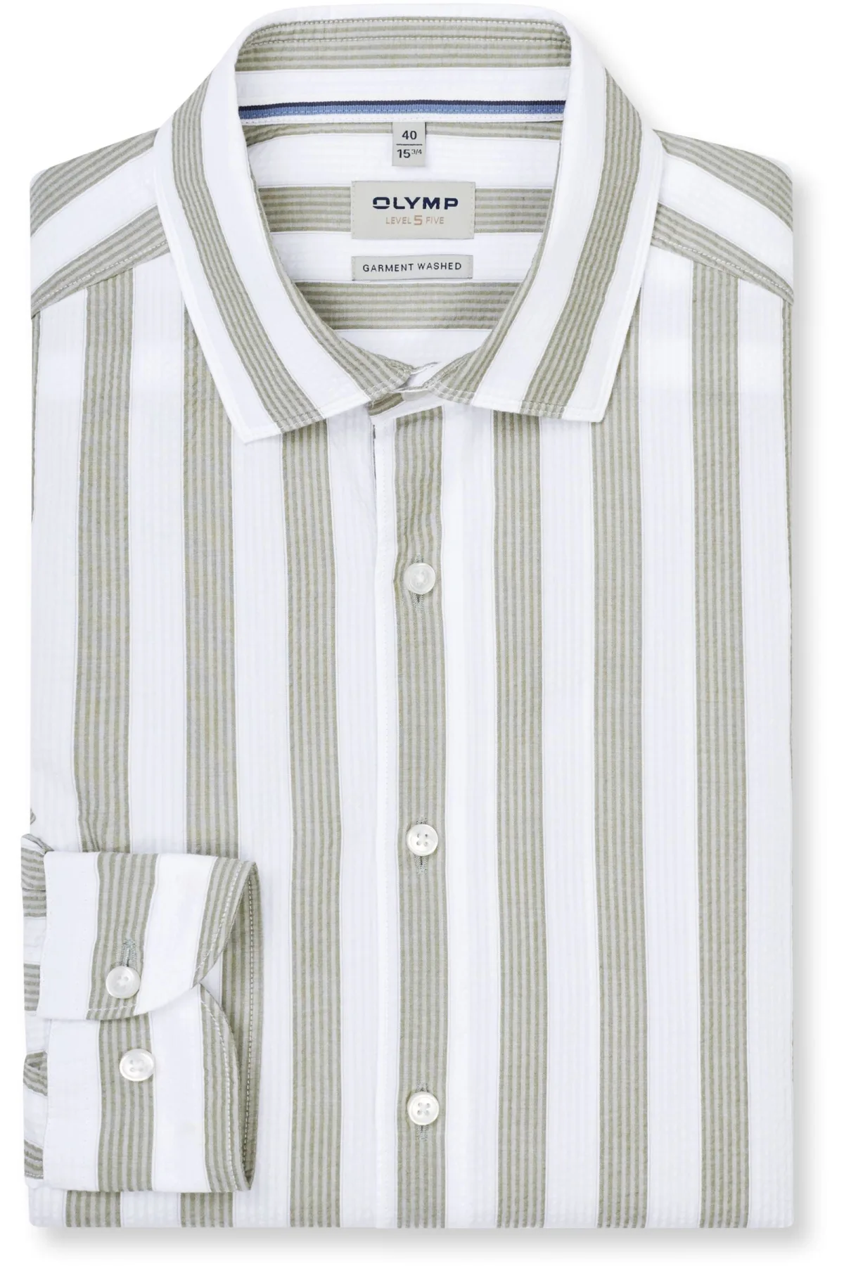 - Bij Overhemden.com kun je OLYMP Level Five Garment Washed Overhemd olijf, Gestreept kopen voor slechts €84,95