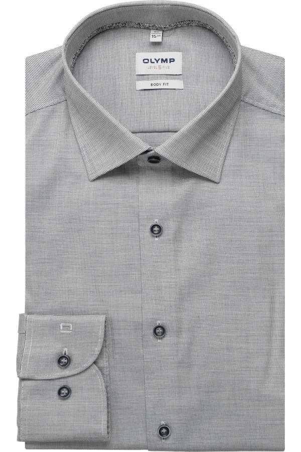 Zakelijk herenoverhemd van OLYMP Level Five;Elastische katoenmix;Slim fit;Kentkraag;Doorknoopsluiting;Design met lange mouwen;Sportmanchetten;Ruglengte bij maat 40: 80 cm;Schouderbreedte bij maat 40: 43 cm;Mouwlengte bij maat 40: 67 cm