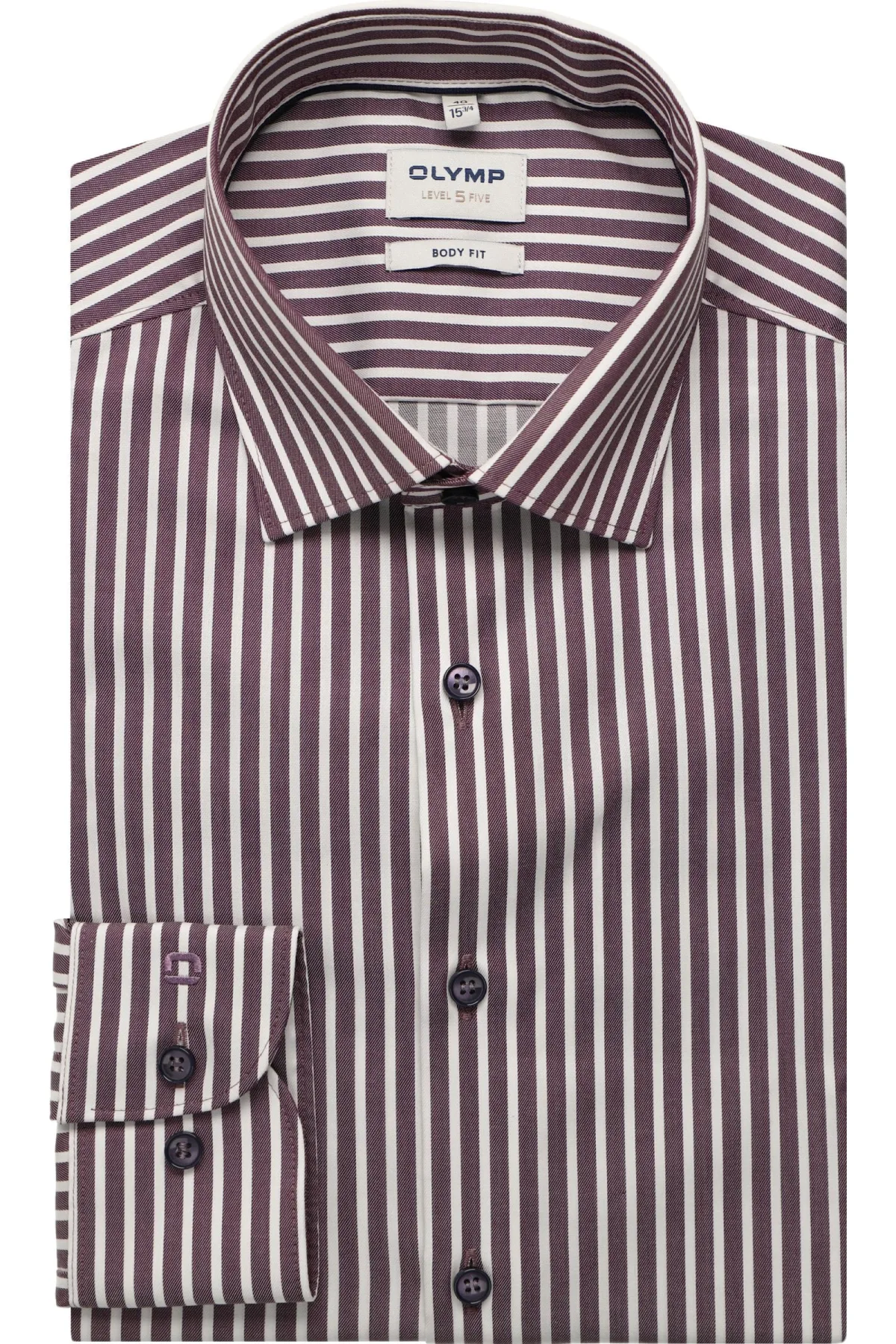 OLYMP Level Five Overhemd aubergine, Gestreept Prijzen