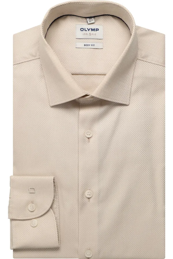 OLYMP Level 5 body fit overhemd structuur beige Strijkvriendelijk Boord