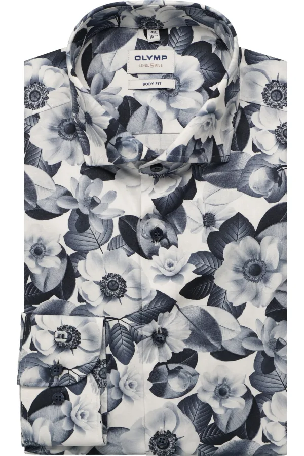 - De laagste prijs van OLYMP Level 5 body fit overhemd popeline wit met blauw bloemen dessin Strijkvriendelijk Boord werd gevonden op 24 april 2026 12:44.