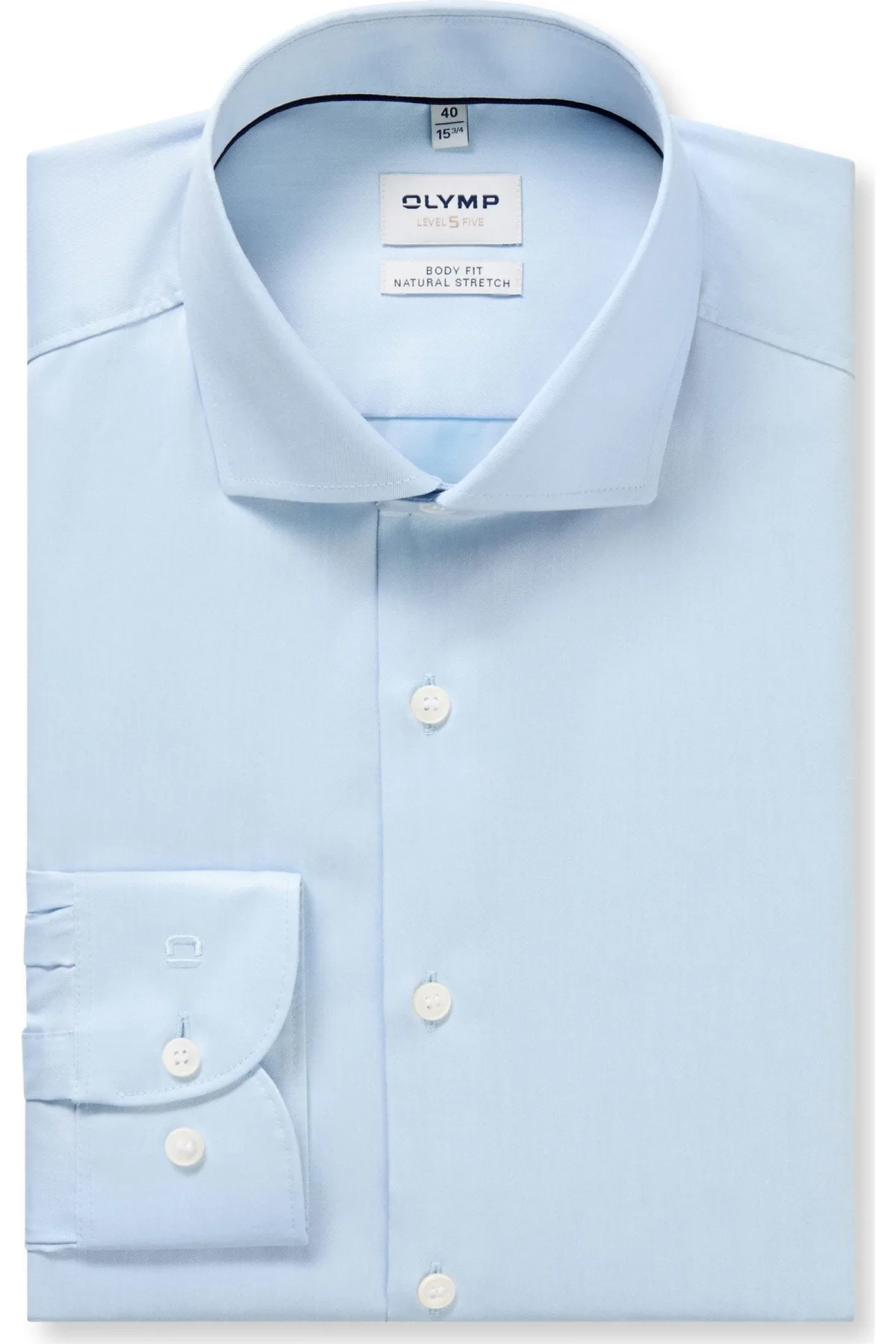 OLYMP Level 5 body fit overhemd twill lichtblauw Strijkvriendelijk Boord