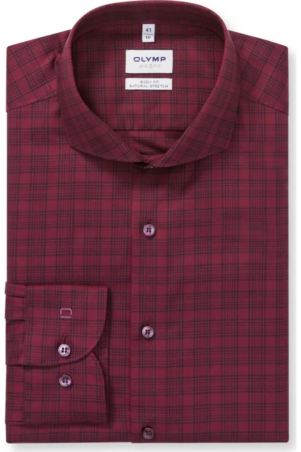 - Bij Overhemden.com kun je OLYMP Level Five Overhemd bordeaux, Ruit kopen voor slechts €68,95