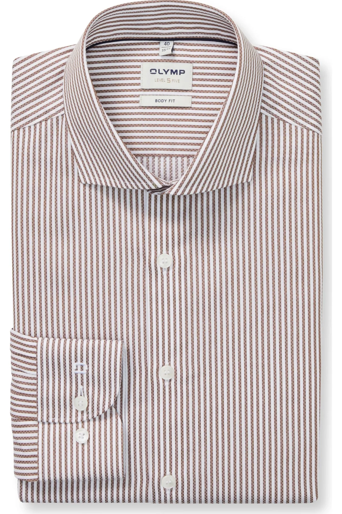 - Bij bol.com kun je OLYMP Level 5 body fit overhemd - popeline - bruin gestreept - Strijkvriendelijk - Boord kopen voor slechts €45,45 , dat is 39% goedkoper dan bij Overhemden.com (€74,95).