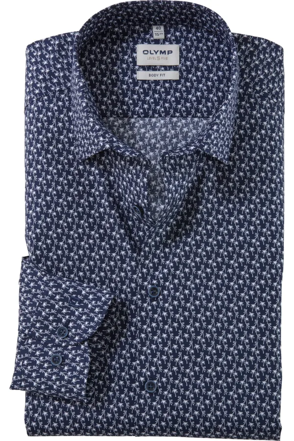 OLYMP Level Five Overhemd marine, Bedrukt Prijzen