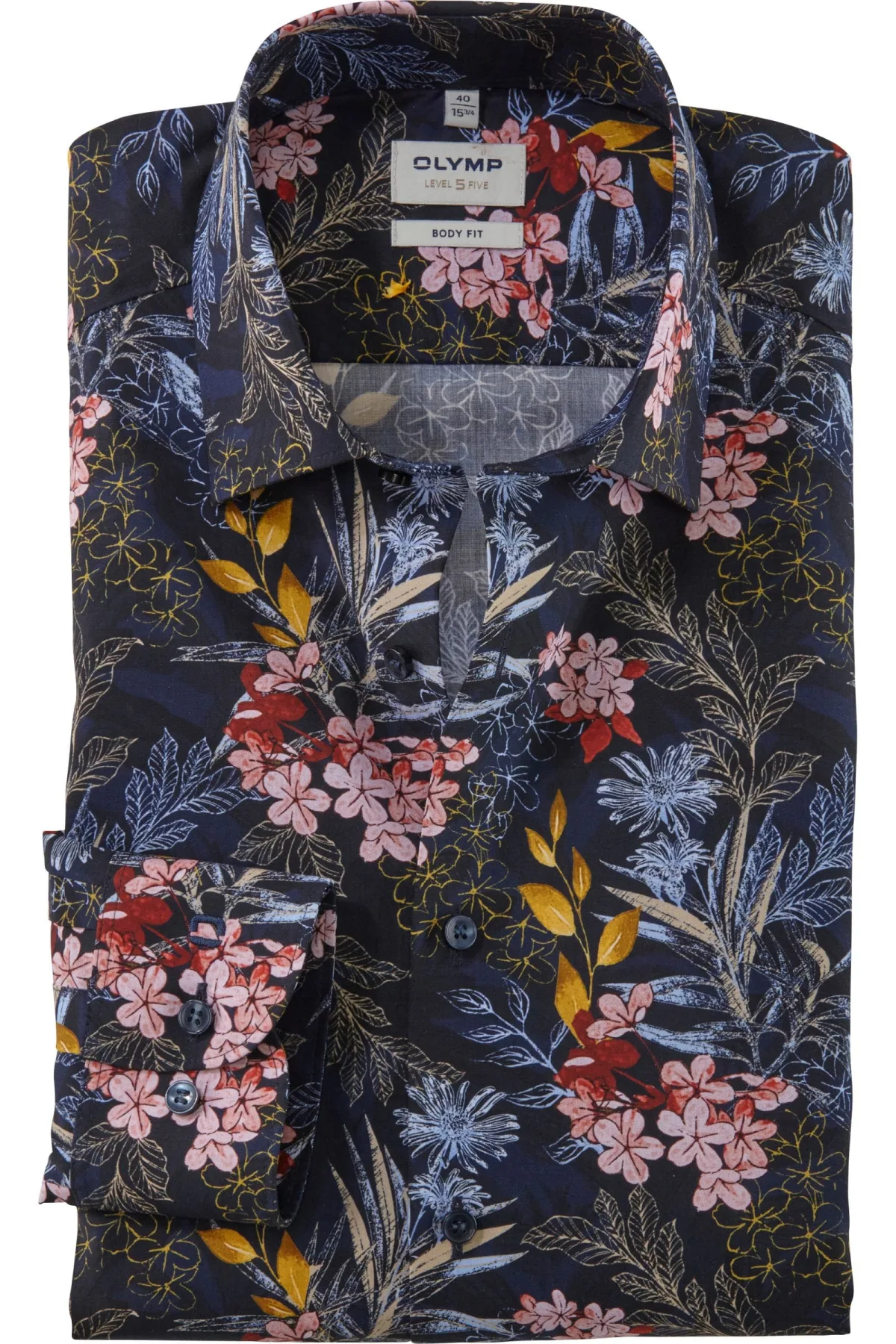 OLYMP Level Five Overhemd marine, Bedrukt Prijzen