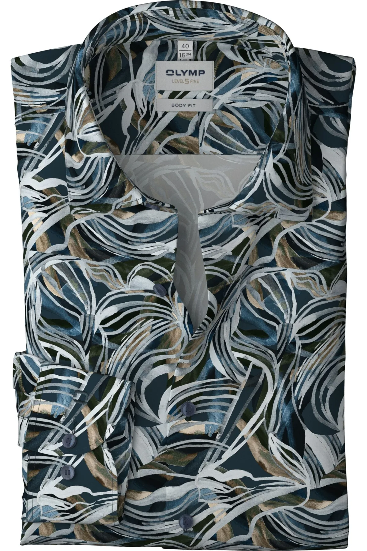 OLYMP Level Five Overhemd marine, Bedrukt Prijzen