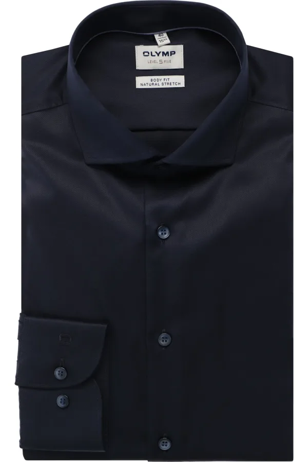 OLYMP Level 5 body fit overhemd twill marine blauw Strijkvriendelijk...