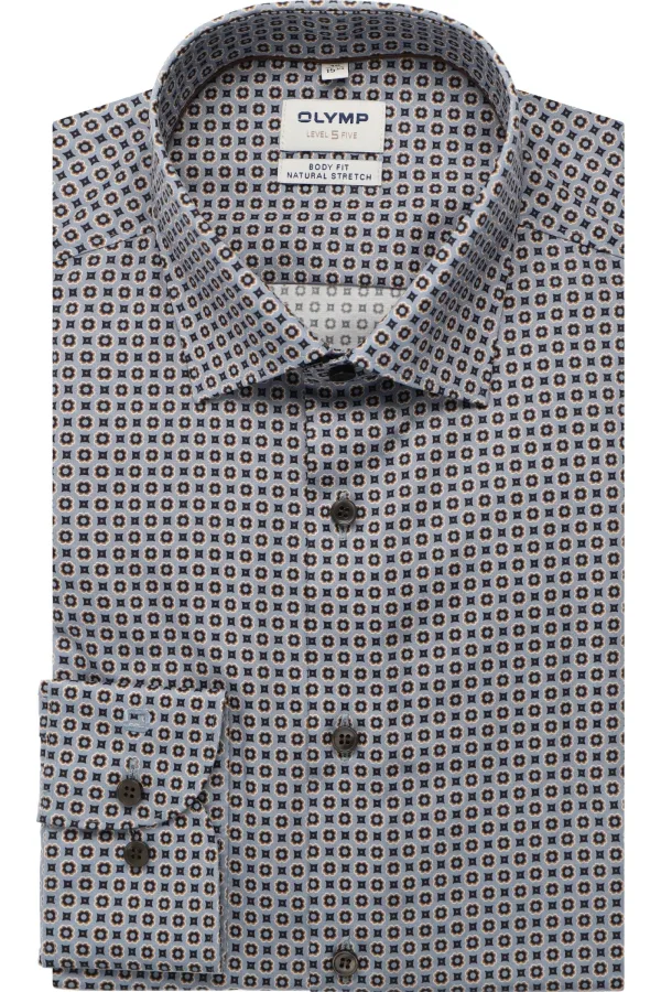 OLYMP Level Five Overhemd rook blauw, Bedrukt Prijzen
