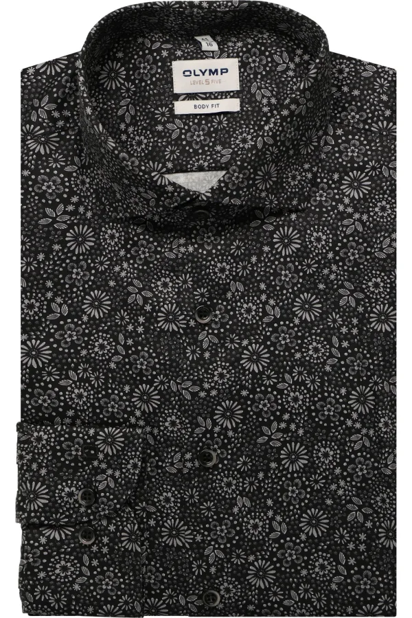 OLYMP Level Five Overhemd zwart, Bedrukt Prijzen