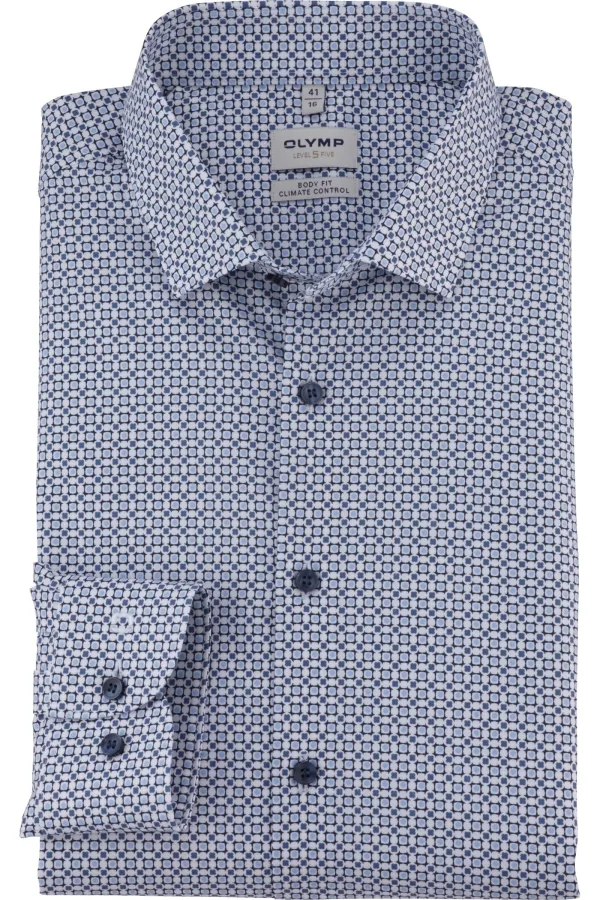 - Bij Overhemden.com kun je OLYMP Level Five Performance Climate Control Overhemd blauw, Bedrukt kopen voor slechts €78,95