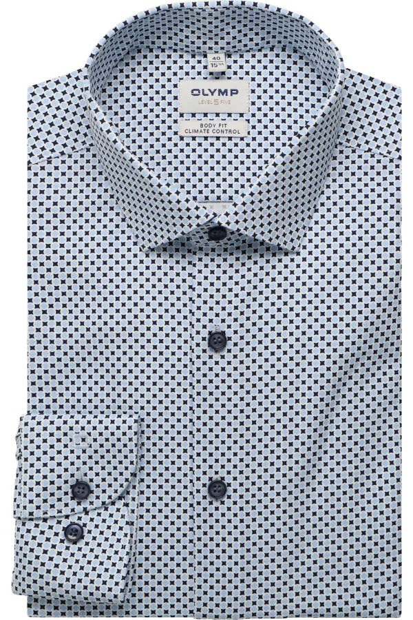 OLYMP Level Five Performance Climate Control Overhemd blauw, Bedrukt Prijzen