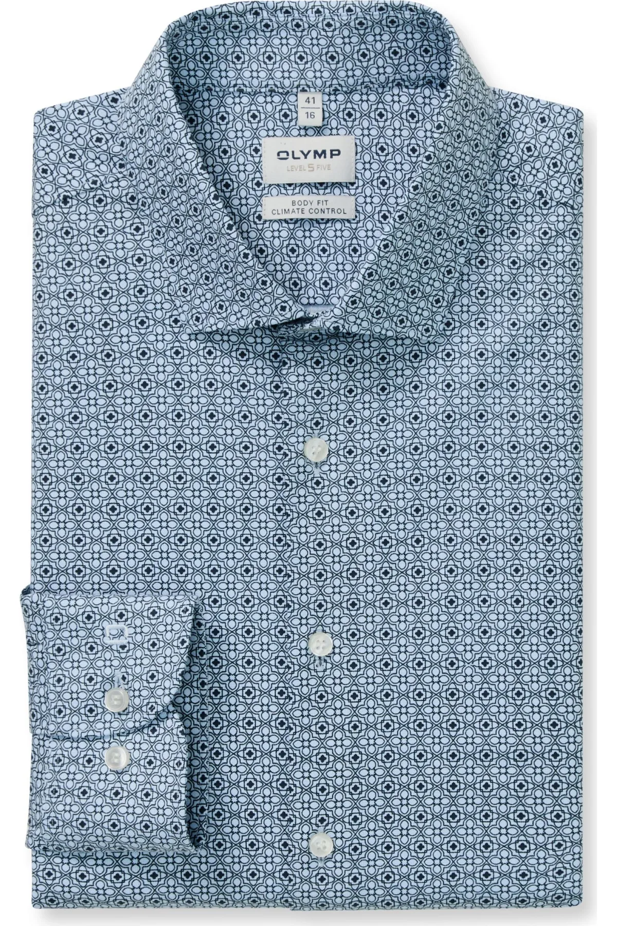 OLYMP Level Five Performance Climate Control Overhemd blauw, Bedrukt Prijzen