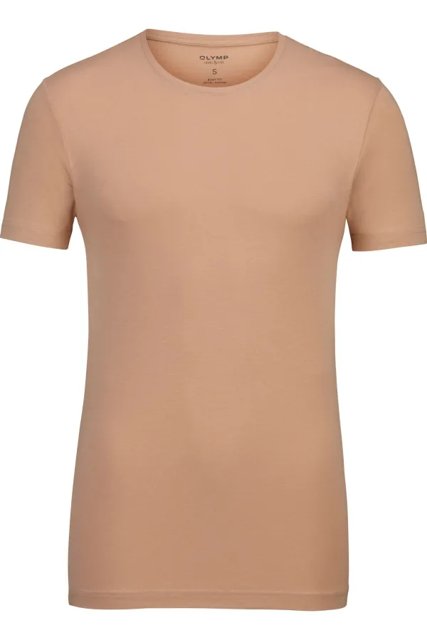 - Bij Overhemden.com kun je OLYMP Level Five T-Shirt ronde hals caramel, Effen kopen voor slechts €35,95