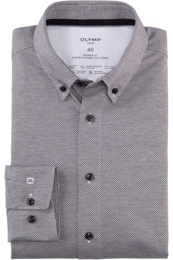 - Bij Overhemden.com kun je OLYMP Luxor 24/Seven Dynamic Flex Jersey shirt zwart/wit, Motief kopen voor slechts €88,95