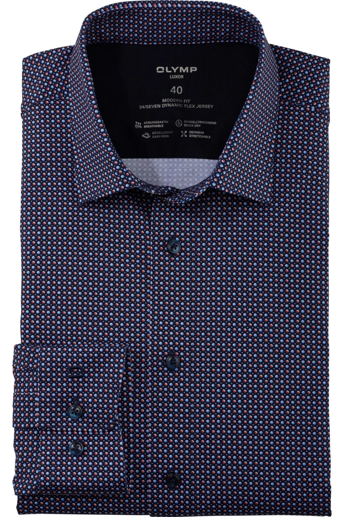 - Bij Overhemden.com kun je OLYMP Luxor 24/Seven Jersey shirt baksteenrood, Motief kopen voor slechts €94,95