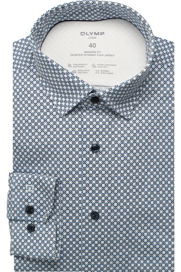 - Bij Overhemden.com kun je OLYMP Luxor 24/Seven Jersey shirt blauw, Bedrukt kopen voor slechts €88,95
