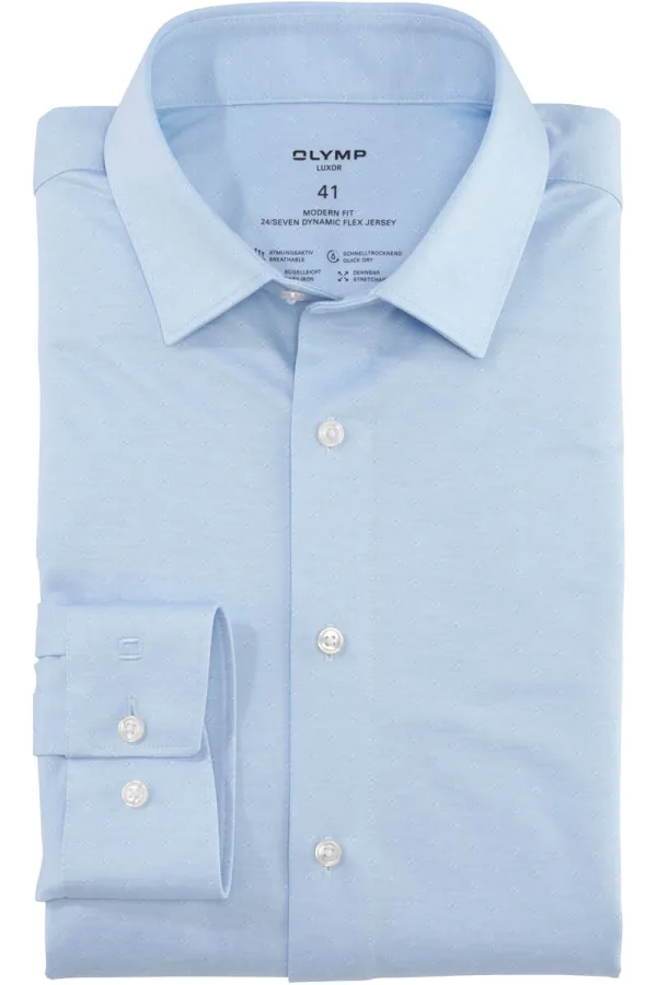 - Bij Overhemden.com kun je OLYMP Luxor 24/Seven Jersey shirt blauw, Motief kopen voor slechts €88,95