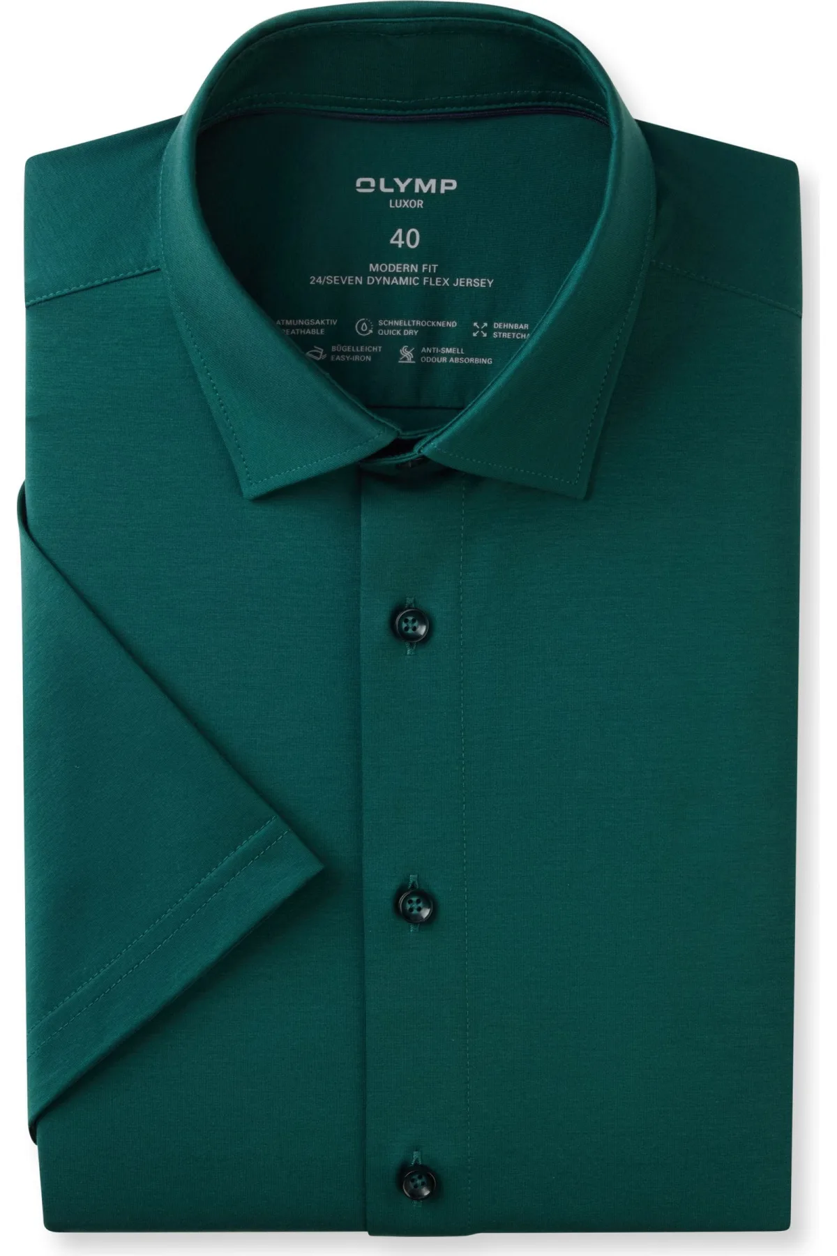 - Bij Overhemden.com kun je OLYMP Luxor 24/Seven Jersey shirt donkergroen, Effen kopen voor slechts €89,95
