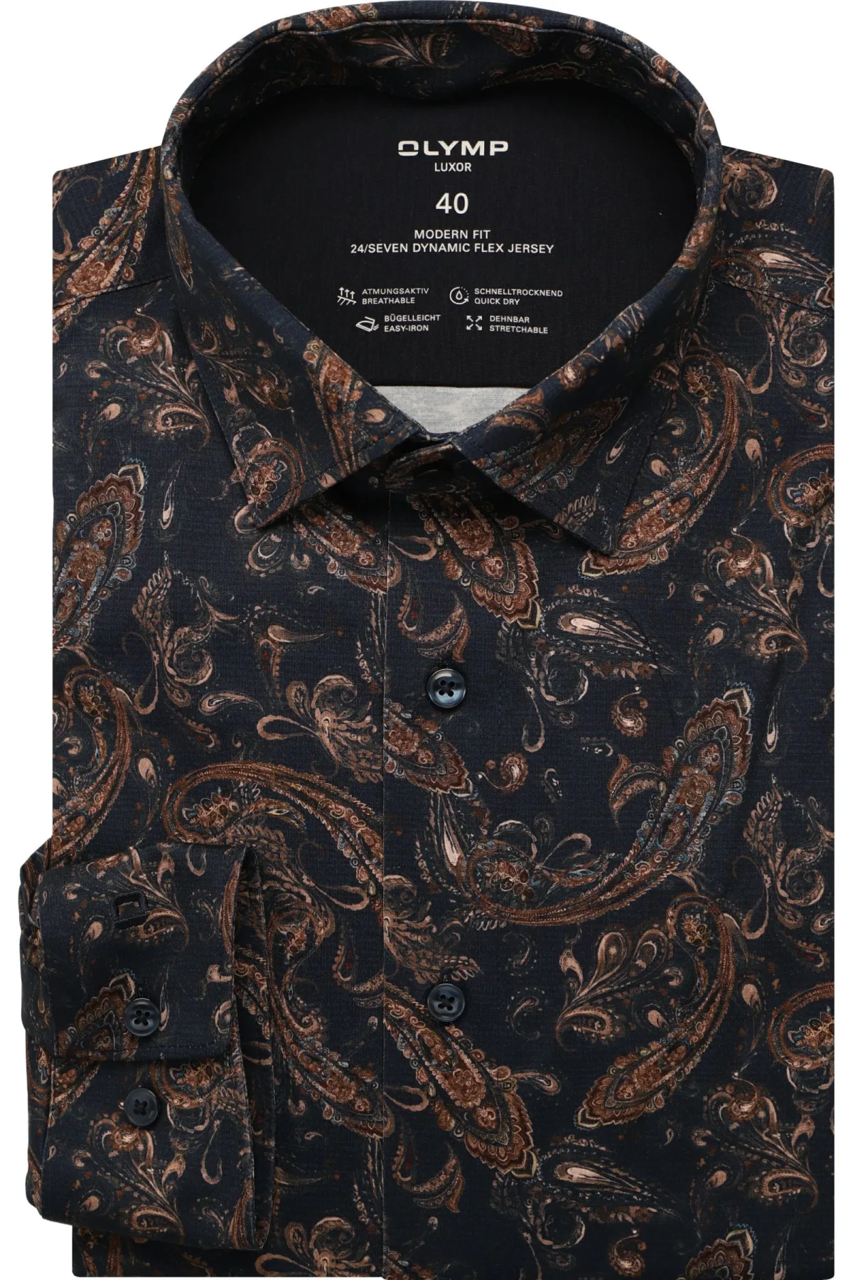 - Bij Overhemden.com kun je OLYMP Luxor 24/Seven Jersey shirt marine, Bedrukt kopen voor slechts €94,95