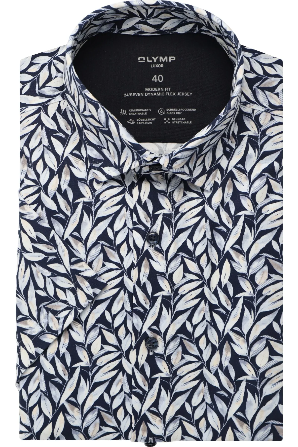 - Bij Overhemden.com kun je OLYMP Luxor 24/Seven Jersey shirt marine, Bedrukt kopen voor slechts €99,95