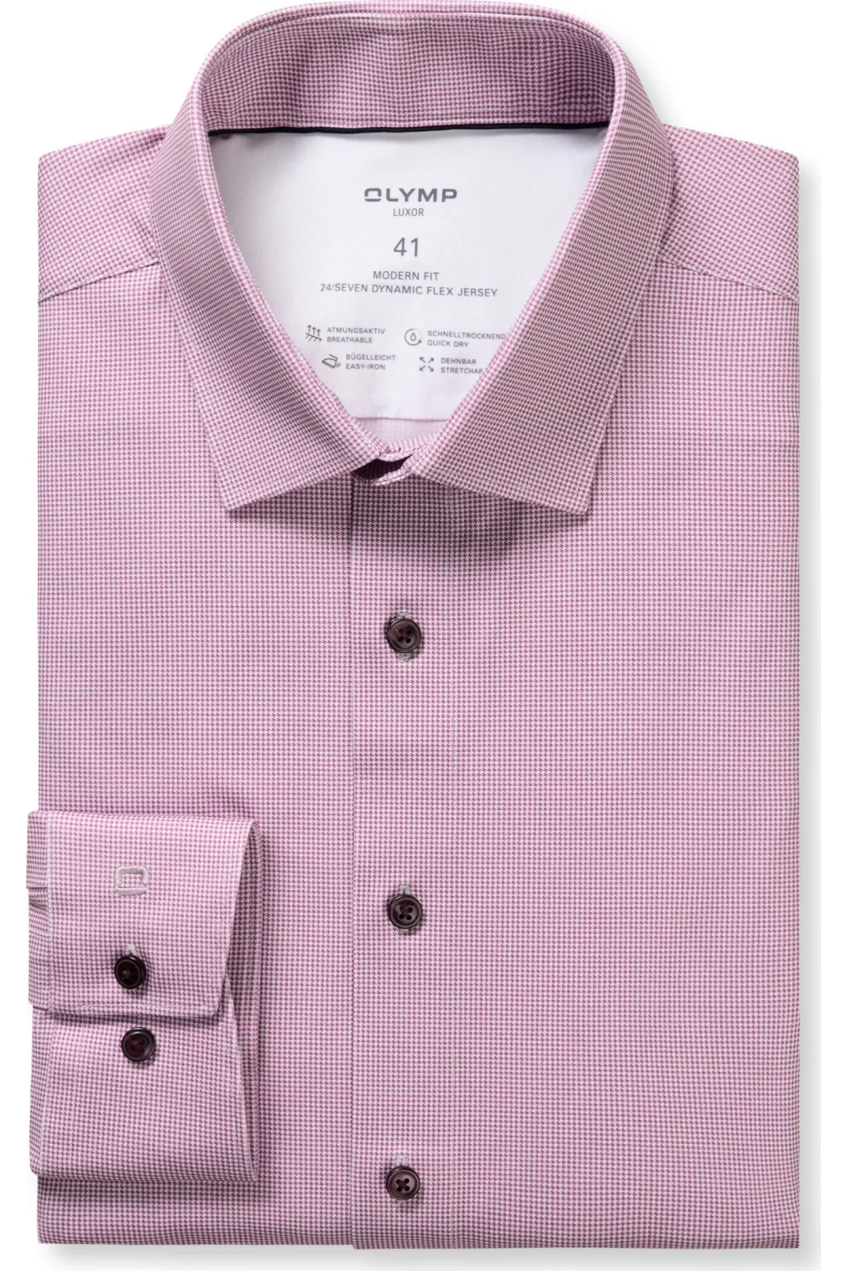 - Bij Overhemden.com kun je OLYMP Luxor 24/Seven Jersey shirt mauve, Bedrukt kopen voor slechts €94,95
