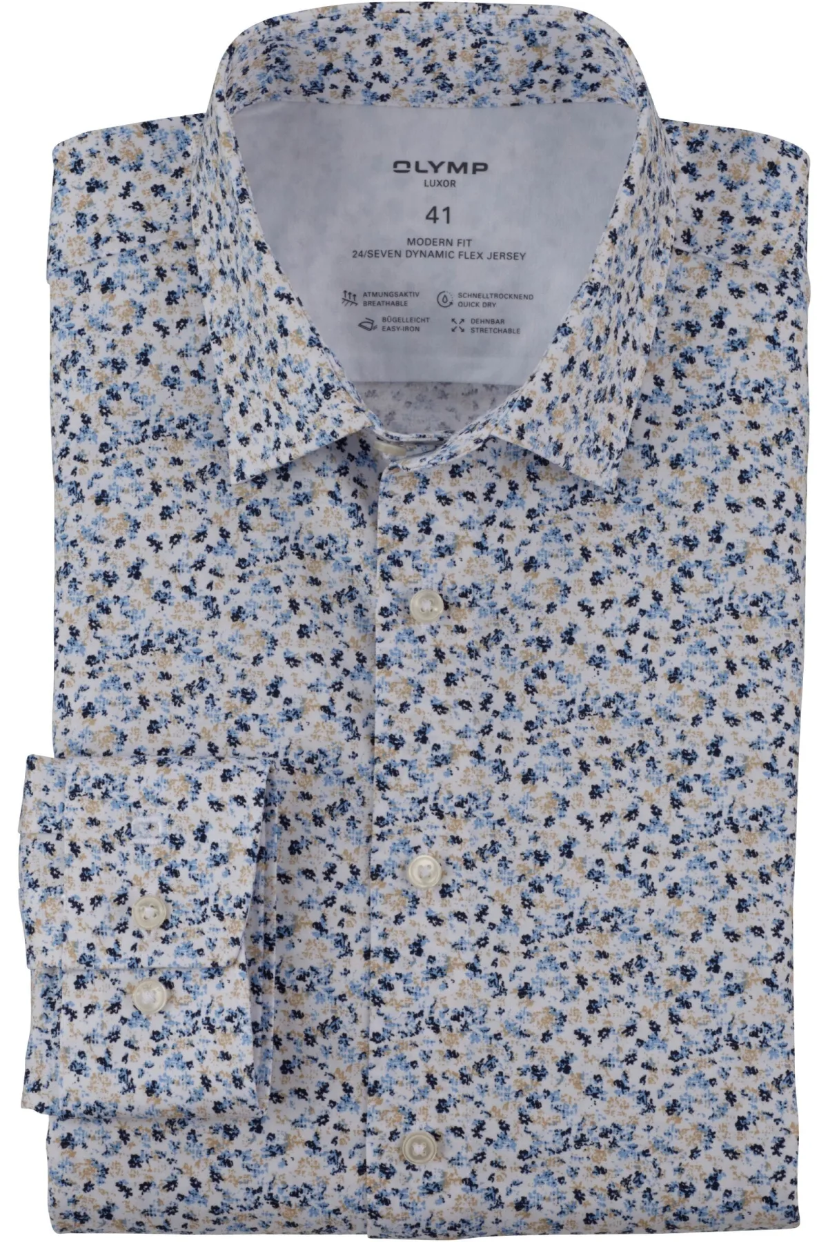 OLYMP Luxor 24/Seven Jersey shirt natuurlijk, Bedrukt Prijzen