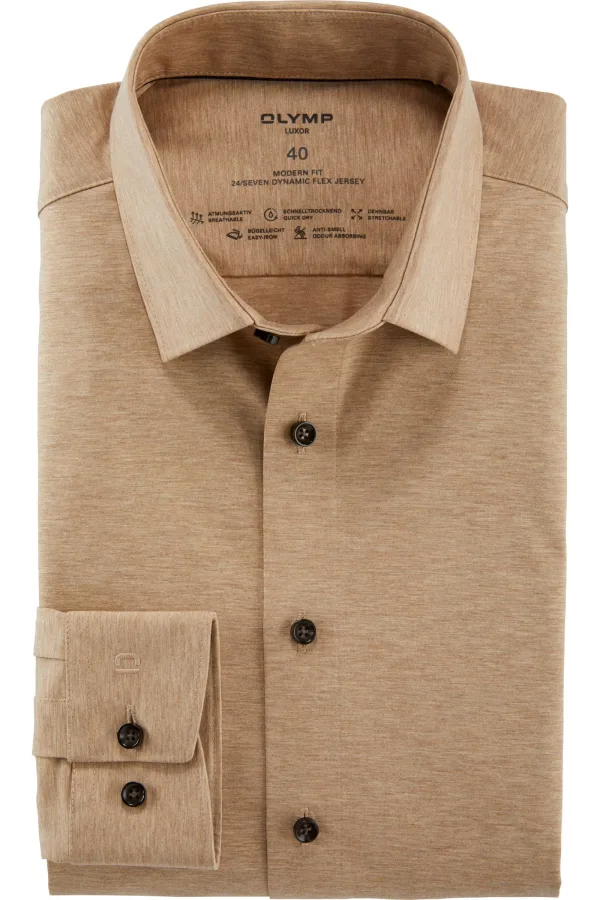 OLYMP Luxor 24/Seven Jersey shirt natuurlijk, Effen
