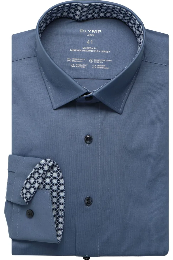 - Bij Overhemden.com kun je OLYMP Luxor 24/Seven Jersey shirt rook blauw, Effen kopen voor slechts €94,95
