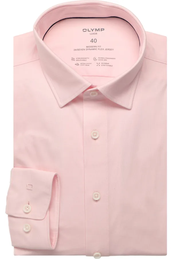 - Bij Overhemden.com kun je OLYMP Luxor 24/Seven Jersey shirt roze, Effen kopen voor slechts €89,95