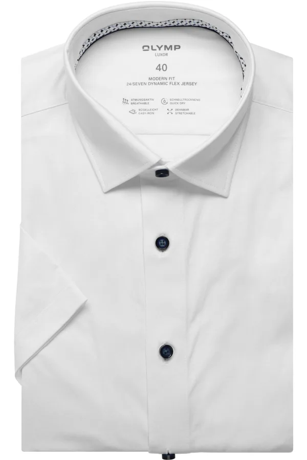 - Bij Overhemden.com kun je OLYMP Luxor 24/Seven Jersey shirt wit, Effen kopen voor slechts €99,95