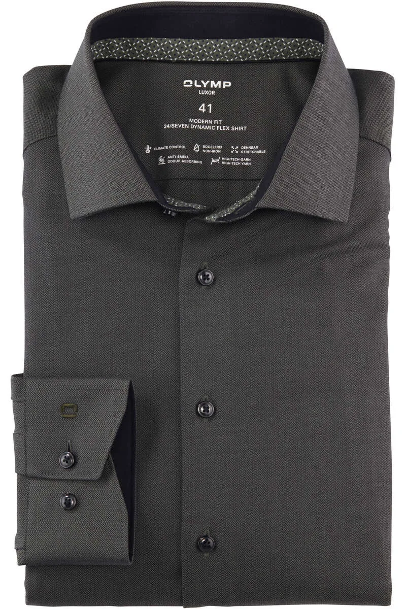 OLYMP Luxor 24/Seven Modern Fit Overhemd olijf, Effen Prijzen