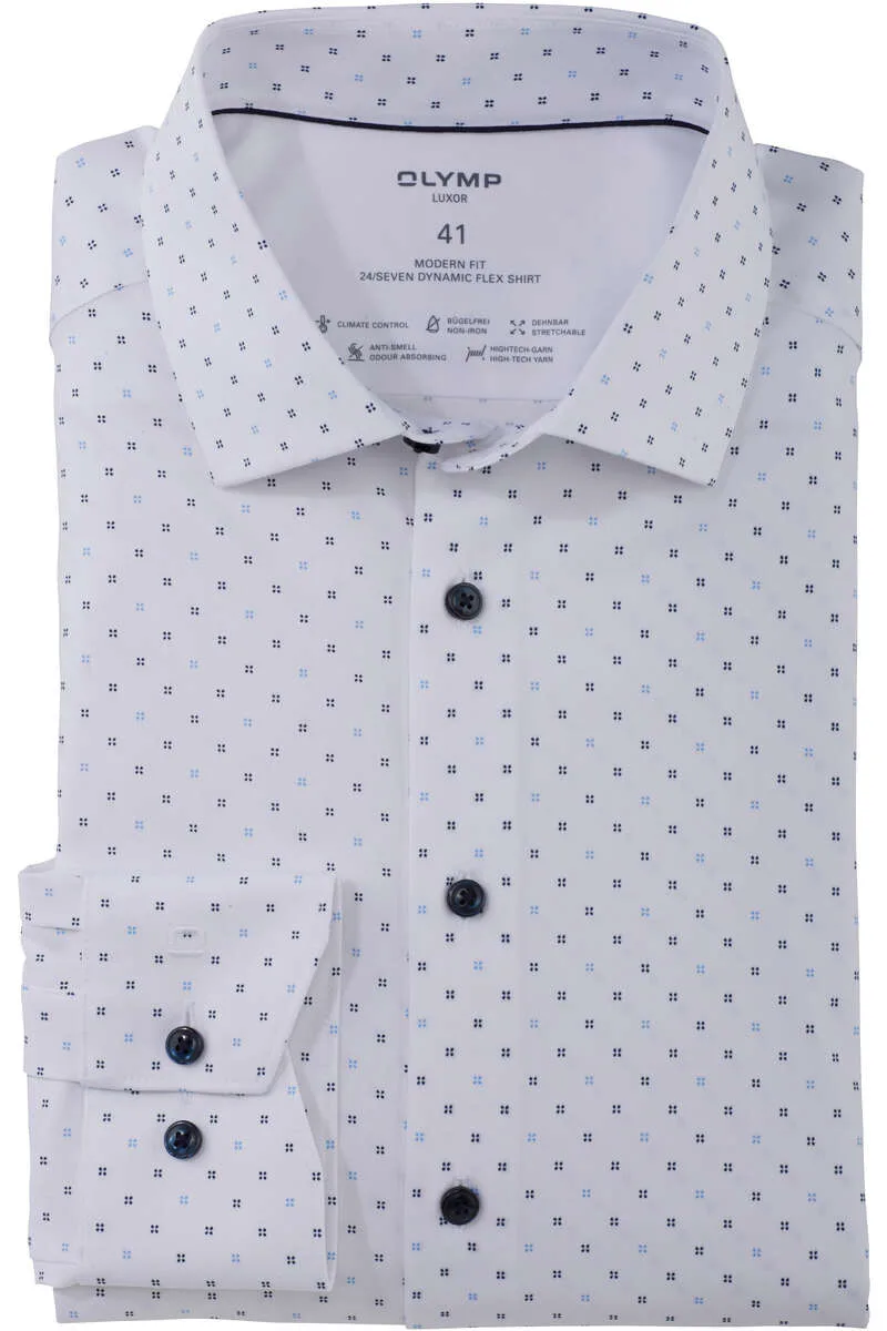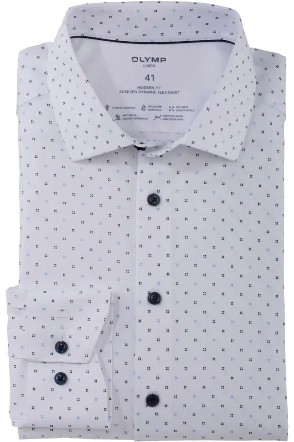 - Bij bol.com kun je OLYMP 24/7 modern fit overhemd - dynamic flex - wit met blauw mini dessin - Strijkvriendelijk - Boord kopen voor slechts €71,89 , dat is 15% goedkoper dan bij Overhemden.com (€84,95).