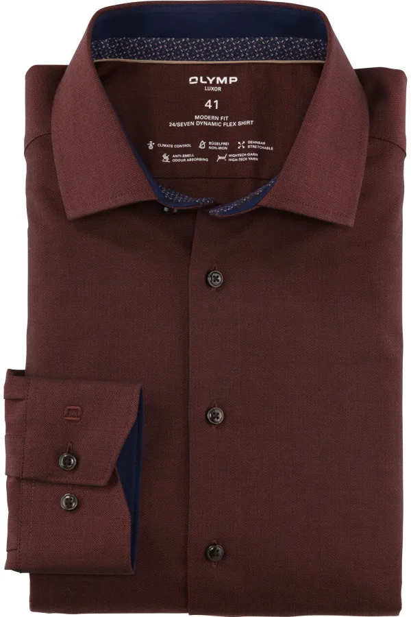 - Bij Overhemden.com kun je OLYMP Luxor 24/Seven Overhemd bruinrood, Effen kopen voor slechts €27,95