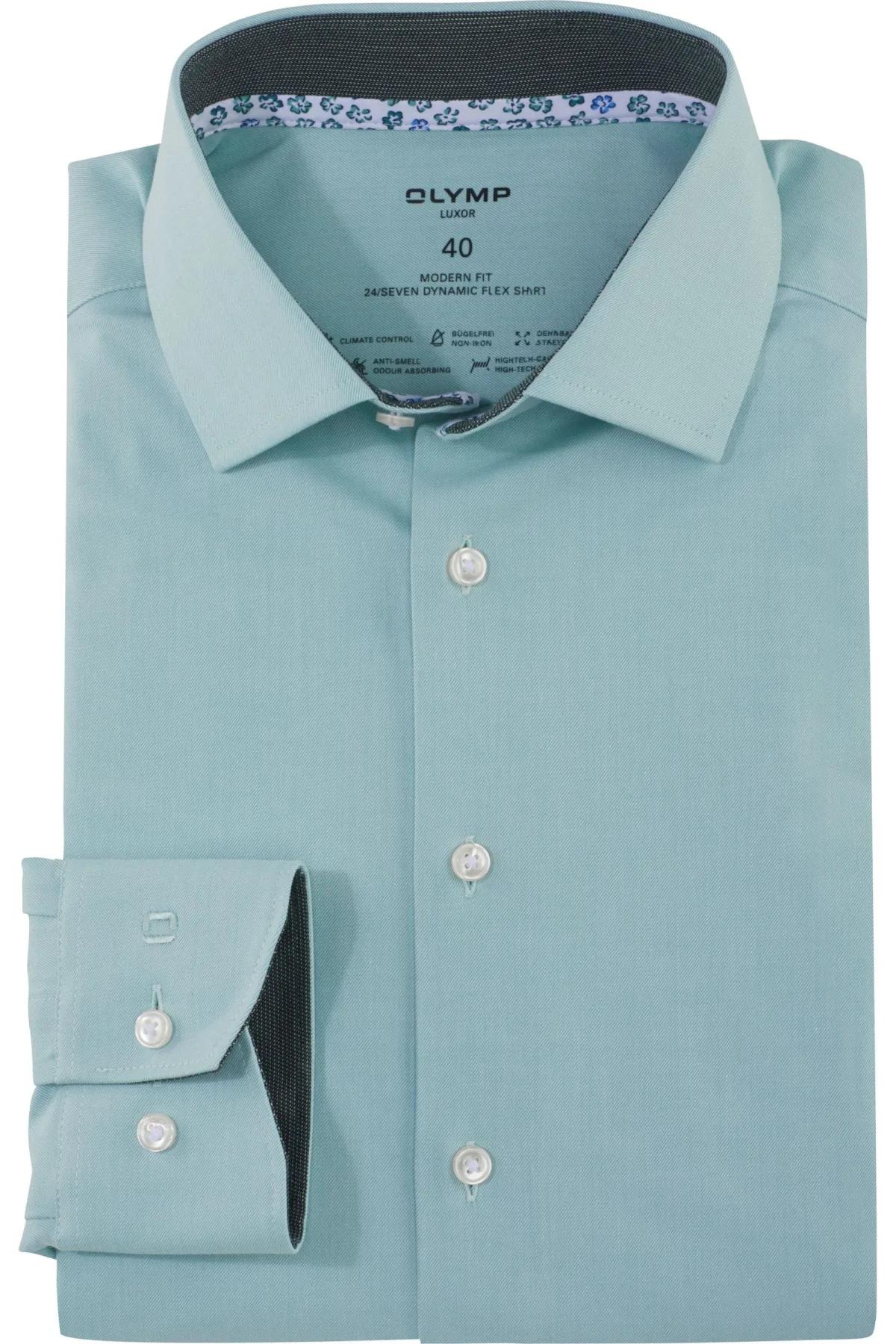 OLYMP Luxor 24/Seven Overhemd kristalgroen, Effen Prijzen