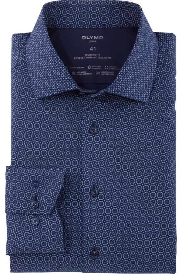 - Bij Overhemden.com kun je OLYMP Luxor 24/Seven Overhemd marine, Bedrukt kopen voor slechts €78,95
