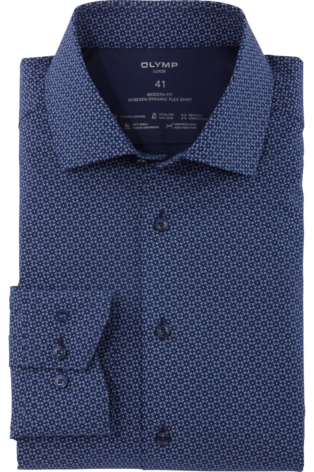 OLYMP Luxor 24/Seven Overhemd marine, Bedrukt Prijzen