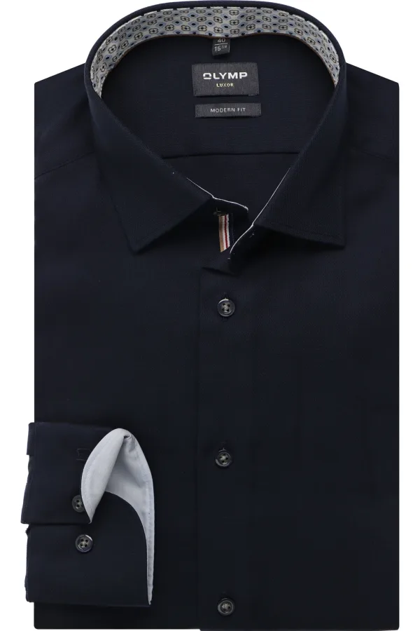 OLYMP Luxor modern fit overhemd - structuur - marine blauw...
