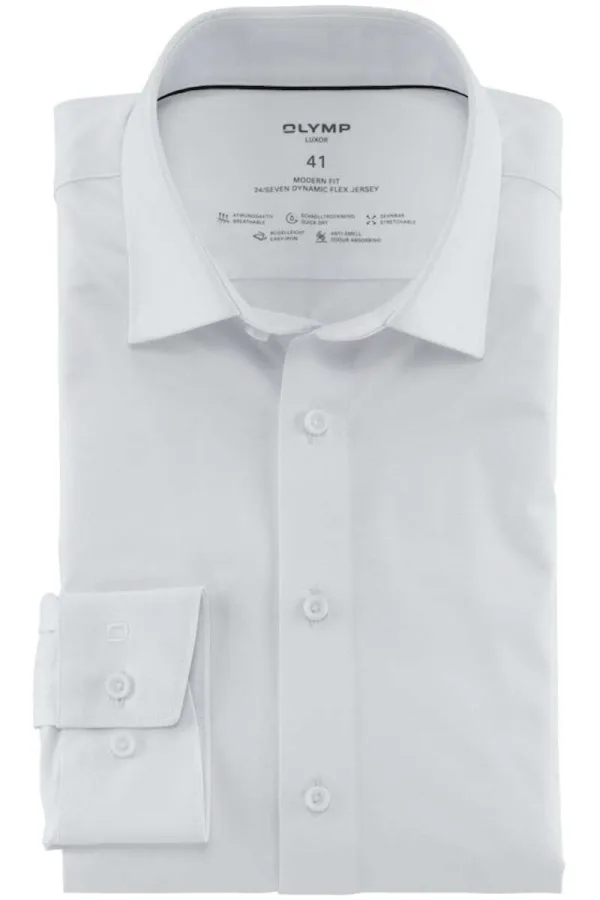 Specificaties: OLYMP Luxor Modern Fit Jersey shirt wit, Effen