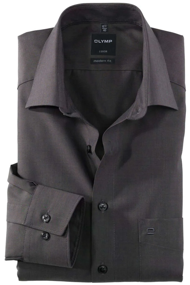 OLYMP Luxor Modern Fit Overhemd antraciet, Effen Prijzen