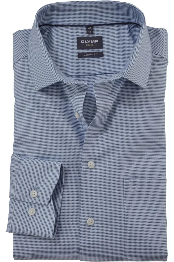 OLYMP Luxor Modern Fit Overhemd blauw, Faux-uni