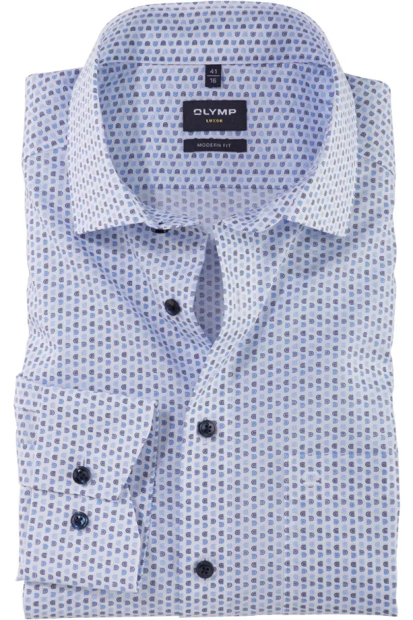- Bij bol.com kun je OLYMP modern fit overhemd - popeline - wit met blauw dessin - Strijkvrij - Boord kopen voor slechts €79,95