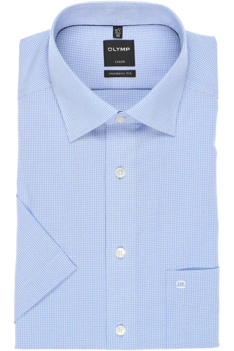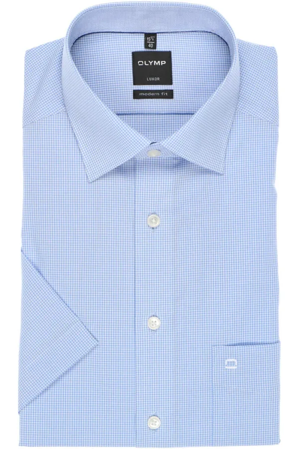 - Bij bol.com kun je OLYMP Luxor modern fit overhemd - korte mouw - lichtblauw met wit geruit - Strijkvrij - Boord kopen voor slechts €68,90 , dat is 14% goedkoper dan bij Overhemden.com (€79,95).