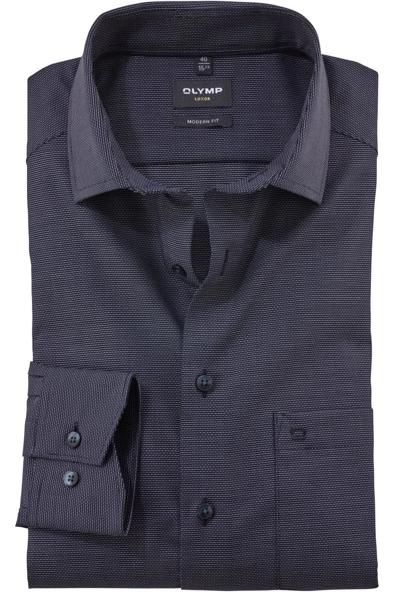 OLYMP Luxor Modern Fit Overhemd marine, Stippen Prijzen