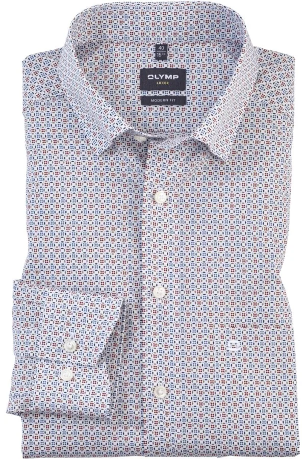 - Bij bol.com kun je OLYMP modern fit overhemd - mouwlengte 7 - mouwlengte 7 - popeline - wit dessin - Strijkvrij - Boordmaat: 44 kopen voor slechts €79,95