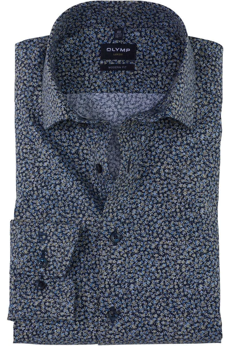 OLYMP modern fit overhemd - popeline - donkerblauwmet beige bloemetjes...