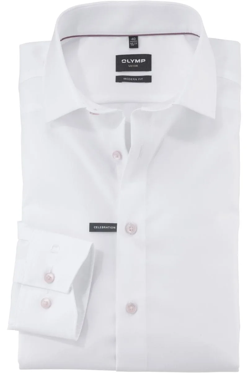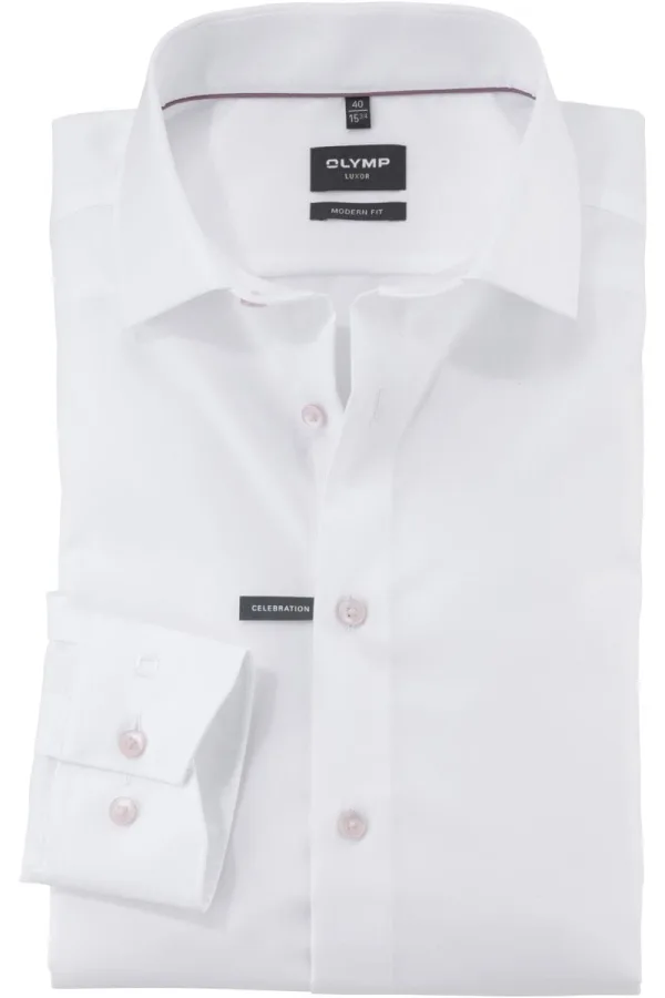 - Bij bol.com kun je OLYMP modern fit overhemd - popeline - wit met roze knoopjes - Strijkvrij - Boord kopen voor slechts €69,95