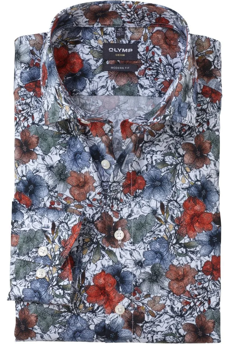 OLYMP Luxor Modern Fit Overhemd wit, Bloemen